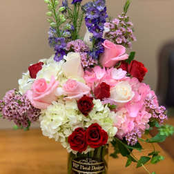 Price: $185.00Pink and White Roses with Lilies