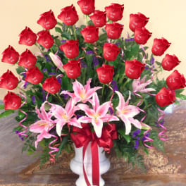 Price: $560.00 Roses & Orchids Elegance: 50 Red Roses and Orchids in Hat Box Product Tags: Next-day Delivery